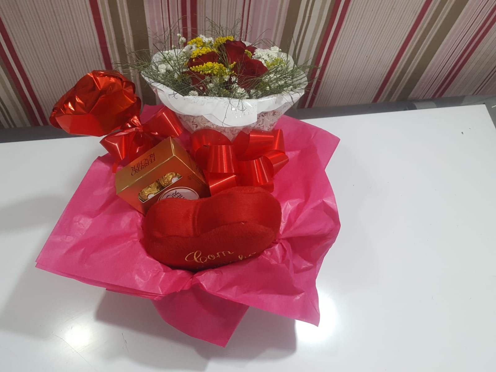 Belíssimo arranjo com 3 rosas vermelhas para presentear alguém que você ama!